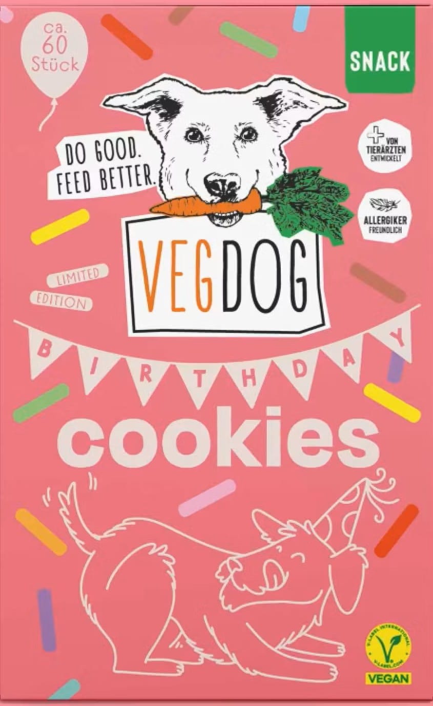 Vegdog täyttää 10 vuotta ja juhlii sitä koirien kanssa synttärikekseillä.
